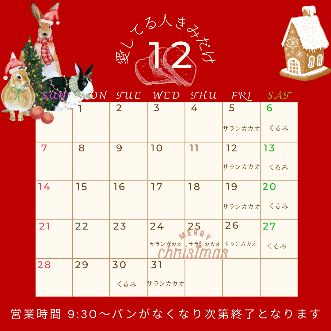 芳醇でリッチな食パンで華やかなクリスマスを★★★サランカカオ【冬季限定販売中】2025年12月31日まで!ご予約は店舗へお問い合わせください(^^♪04-2946-7753★★★12月の食卓を彩るパンの販売もございます。皆さまのお越しを心よりお待ちしております!♦年末年始は休まず営業いたします。